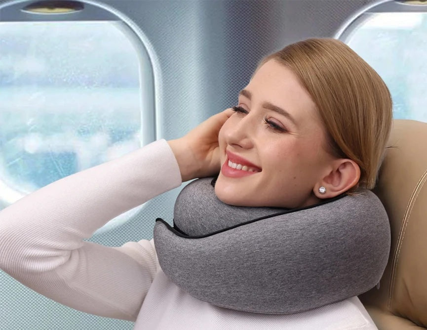 Transform your travel experience with unparalleled comfort and support. This uniquely designed neck pillow embraces you in a soft memory foam hug, ensuring restful journeys wherever you go.